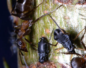 Cinara_curvipes_attended_by_Formica_rufa_on_Abies
